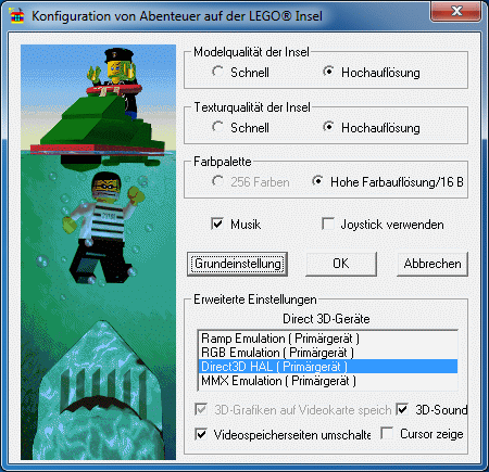 - Folgendes ist auch einer der Tipps, war aber bei uns nicht nötig; bei uns funktionierte das Spiel mit Direct3D Hall: Starten Sie die Datei CONFIG.EXE im Spielverzeichnis. Klicken Sie auf "Erweiterte", und wählen Sie als Direct3D-Gerät "Ramp Emulation".