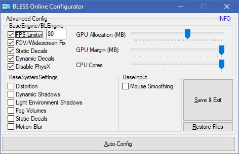 Bless Online Configurator - konfiguriert Graphik-Einstellungen zum Verbessern der Performance