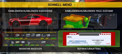 Um blitzschnell zum nächsten Auftrag und damit zur nächsten Mission zu kommen, schalten Sie den Entwickler-Modus ein. Klicken Sie mit der rechten Maustaste, um das Schnellmenü (Quick Menu) zu öffnen. Halten Sie die linke [Umschalt]-Taste und [F1], während Sie auf "Reparaturauftrag" ("Show Repair Order") klicken. Klicken Sie auf der Rechnung auf den "Repaired"-Stempel. Die Reparatur ist abgeschlossen.