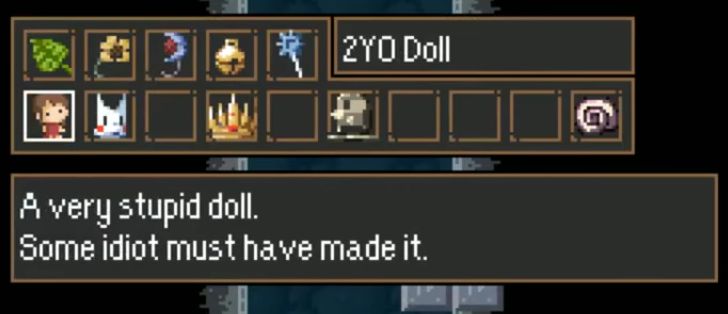 Drücken Sie dreimal [F12], um die 2YO Doll (Doll = Puppe) zu erhalten; Sie finden sie im Inventar.