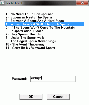 Wählen Sie Game / Go to level. Suchen Sie sich einen Startlevel aus, und tragen Sie das dazugehörige Paßwort ein.