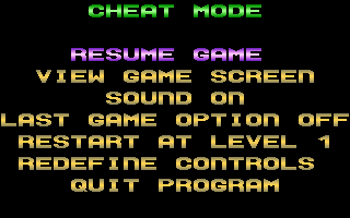 Tippen Sie hier MASM5.1 ein, inklusive des Punkts. Als Bestätigung ändert sich der Text Options Screen in Cheat Mode. Sie spielen nun unverwundbar und können mit der Option Restart at Level alle Levels auswählen.