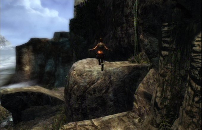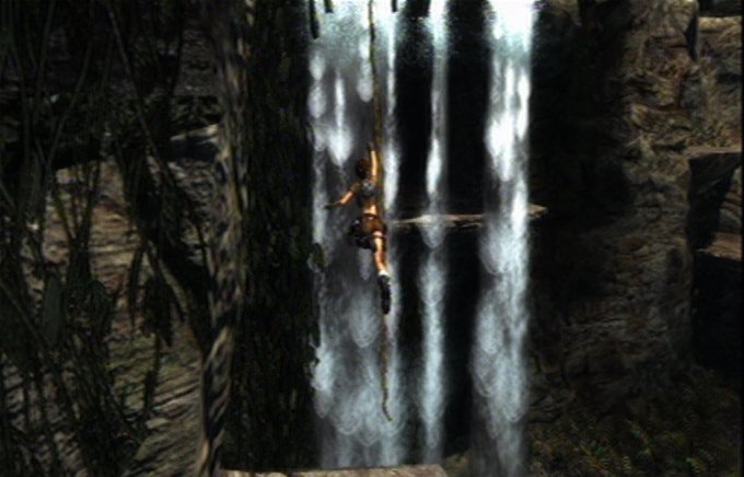 Screenshot Lauft bis zum Wasserfall, hier springt ihr auf die Liane. Dreht euch nun zunächst nach links und ihr solltet vor euch eine dunkle Höhle sehen. Schwingt nun zu dieser um sie durch einen gewagten Sprung zu erreichen. Folgt dem Weg bis ihr am Ende einen Schatz findet, dann springt ihr nach unten und geht nach links weiter.