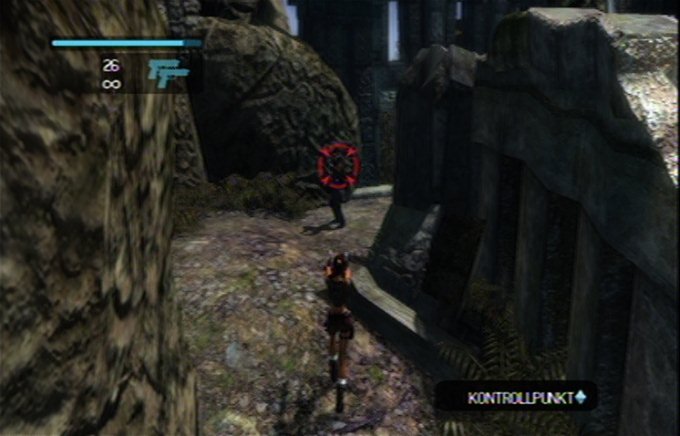 Screenshot Konzentriert euch sobald es geht auf die Plattformen. Diese könnt ihr zunächst mit eurer Waffe bearbeiten bis der Steinteil weggeschossen ist. Nun benutzt ihr schnell den Magnethaken um den metallischen Teil wegzuziehen und die Plattform sollte einbrechen. Wiederholt das bei allen Plattformen, dann habt ihr die volle Aufmerksamkeit eures Gegners. Schießt auf ihn und bewegt euch gleichzeitig im Kreis um ihn herum, lauft einfach immer in eine Richtung und ballert gleichzeitig was das Zeug hält und ihr solltet kaum getroffen werden. Wichtig ist das ihr in der ersten Phase des Kampfes viel ausweicht da ihr ansonsten von den Granaten in Stücke gerissen werdet. Vergesst außerdem nicht das Lara den wunden Punkt der Plattformen selbstständig anvisiert sobald ihr die Waffen gezogen habt.