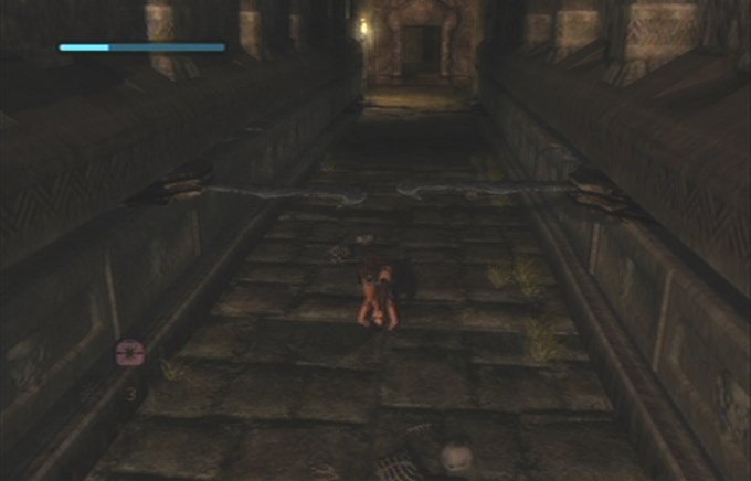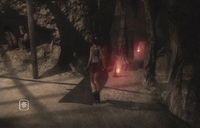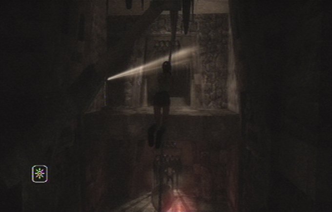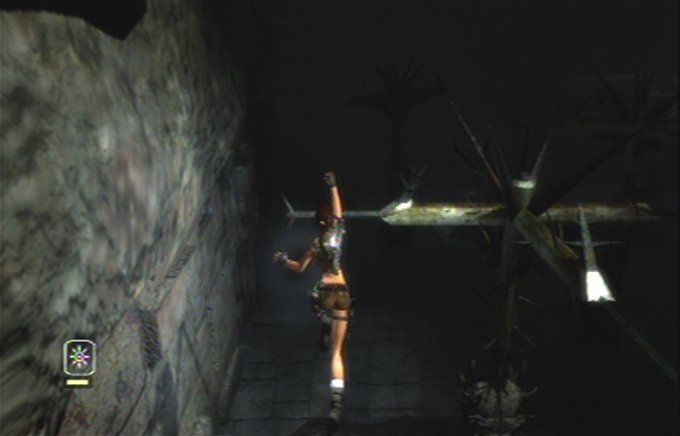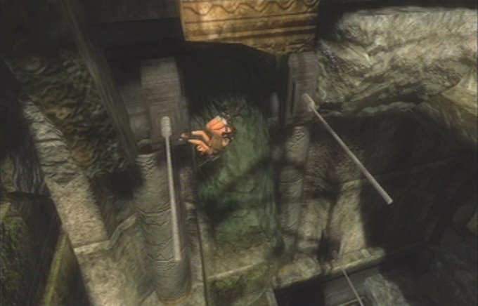 Screenshot Haltet euch rechts und rollt die runde Steinkugel weg von der Druckempfindlichen Bodenplatte. Geht zurück und haltet euch dabei links - dort wo keine Speere aus der Wand kommen - und ihr erreicht so gefahrlos die andere Seite. Klettert rechts nach oben und springt nun auf das Seil das beinahe unsichtbar im Raum vor euch hängt. (in Richtung der zuvor entschärften Falle) Schwingt euch nun auf die andere Seite und lauft geradeaus weiter wo ihr nach unten fällt.