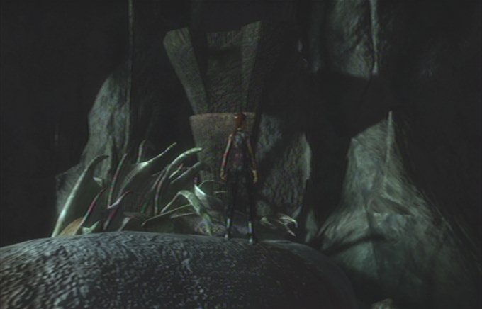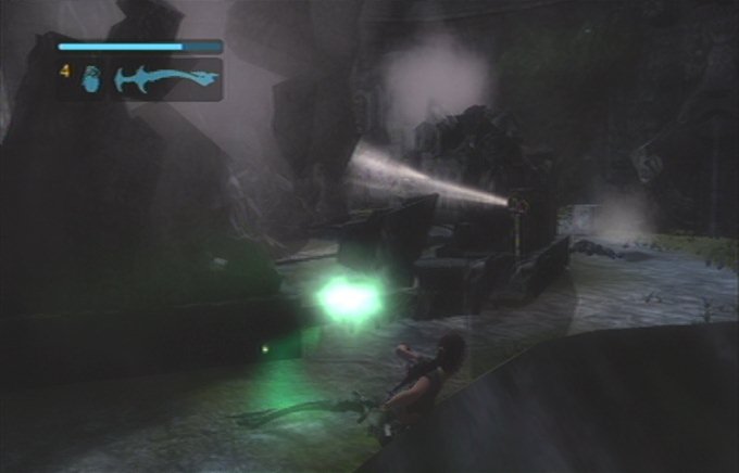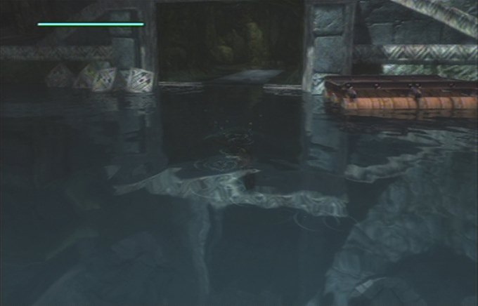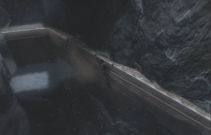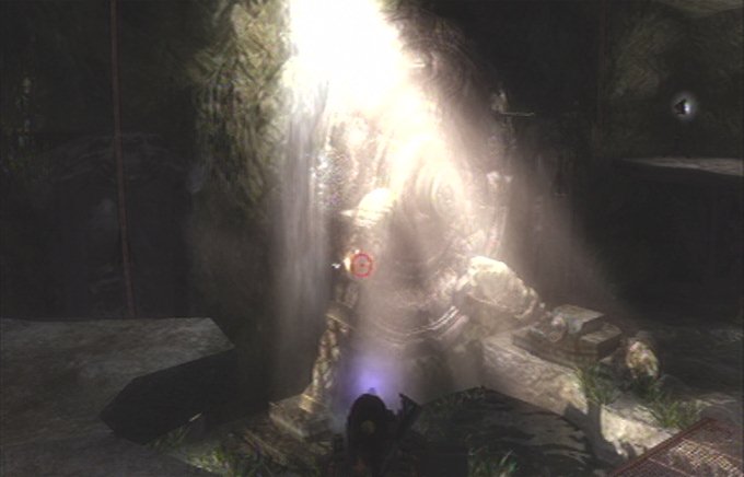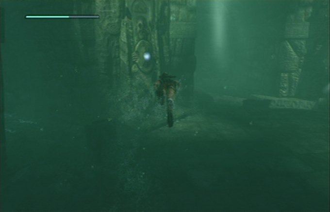 Screenshot Haltet euch rechts und springt in den kleinen See. Taucht unter und folgt jetzt dem unterirdischen Weg bis ihr wieder in einem größeren Raum landet, zwischendurch solltet ihr jedoch immer wieder auftauchen um Luft zu schnappen. Im großen Raum müsst ihr alle vier Schalter aktivieren, das sind die vier blau leuchtenden Steine unter Wasser. Sind sie aktiviert folgt eine kurze Sequenz, dann könnt ihr durch das Loch in der Wand springen und dem Weg weiter folgen.