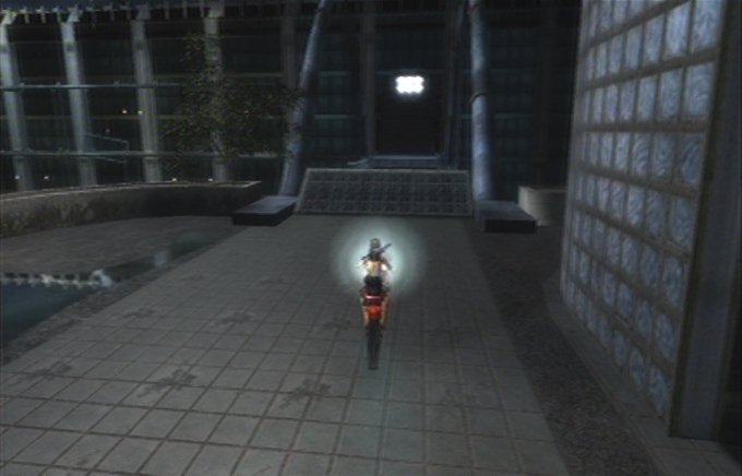 Screenshot Steigt auf und fährt nach draußen, haltet euch immer rechts und braust schließlich mit Vollgas auf die Rampe am Ende des Weges zu. In der nun folgenden Sequenz müsst ihr zunächst die X-Taste drücken damit ihr den Magnethaken einsetzt, dann die A-Taste und schließlich B.