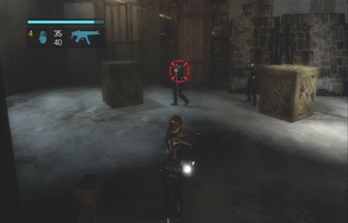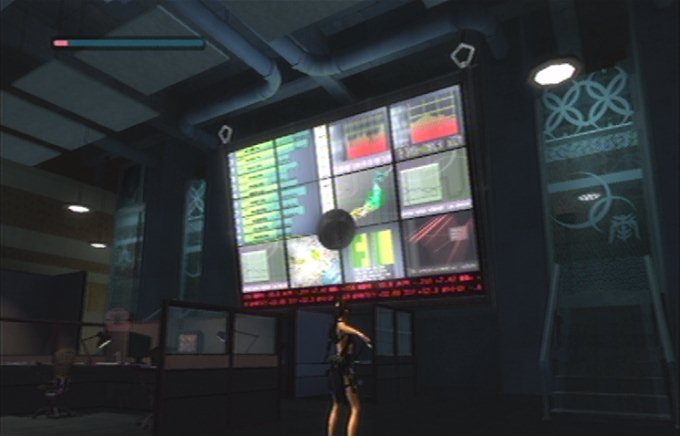 Screenshot Kümmert euch um die auftauchenden Gegner, dann könnt ihr rechts oben durch die Tür das Gebäude betreten. Geht die Stiegen einmal nach oben und rechts durch die Tür weiter. Im nun folgenden Raum solltet ihr zunächst alle Gegner ausschalten, dann kümmert ihr euch um die große Wand mit den Monitoren. Setzt den Magnethaken ein um sie nach vorne zu bewegen, dann schießt ihr auf die beiden Haken oben links und rechts. Erledigt die Gegner die dahinter auftauchen, dann geht ihr durch die nächste Tür weiter.