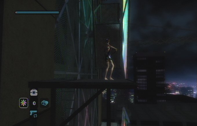 Screenshot Benutzt bei eurer Anfangsposition den Magnethaken um den Kran vor euch zu bewegen. Sobald dieser Nahe genug bei euch ist springt ihr auf das Seil und schwingt so auf die andere Seite. Klettert hier die Leiter nach oben und springt nach rechts weg auf das Schild. Hangelt euch nach links und ihr könnt euch über die Stangen auf die andere Seite schwingen wo ihr euch rechts bei dem Schild festhalten könnt.