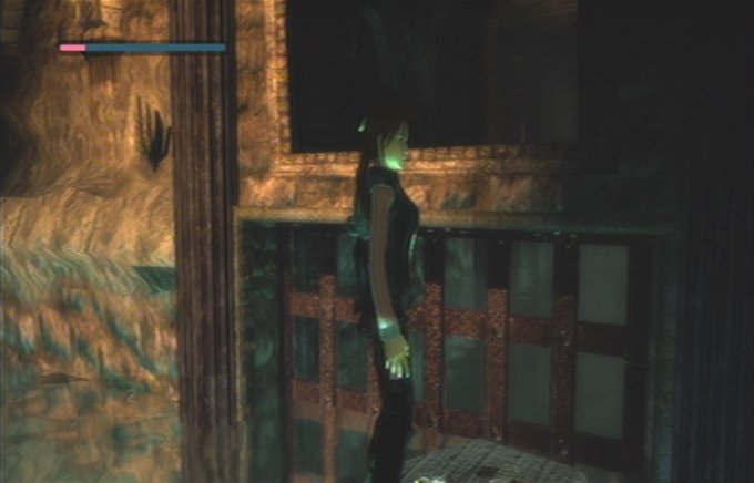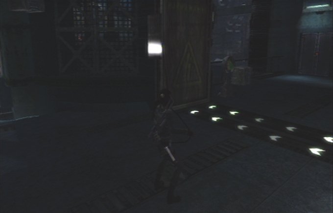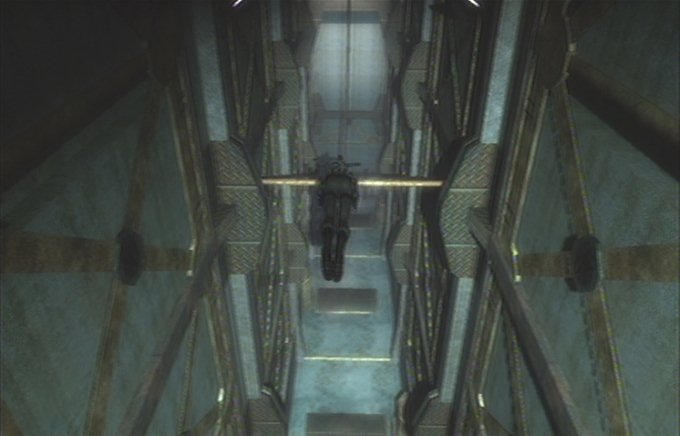 Screenshot Folgt dem Weg weiter bis ihr in einem größeren Raum landet, nach der Sequenz tauchen vor euch zwei Gegner auf, seid also vorsichtig und kümmert euch um sie. Benutzt nun den Magnethaken um die große Statue die in der Luft hängt zu bewegen, wenn sie weit genug schwingt sollte sie die Glaswand zerstören. Schaltet die beiden Gegner aus, dann klettert ihr nach oben und fährt mit dem Lift weiter.