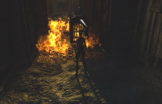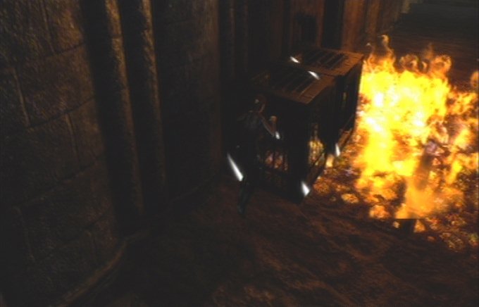 Screenshot Von hier aus ist es nicht mehr weit nach unten, seid ihr dort sicher gelandet folgt ihr dem Gang bis zu dem Feuer. Springt über den Abgrund auf die andere Seite, dann geht es weiter bis zur nächsten Feuerstelle. Zieht die Kiste zu euch her und nutzt sie um mitten im Feuer zu stehen. Beobachtet die Flammen vor euch und springt dann in den sicheren Bereich wenn die Flammen für kurze Zeit ausgehen. Von hier aus müsst ihr nun schnell weiterspringen und erreicht so den sicheren Ort auf der anderen Seite.