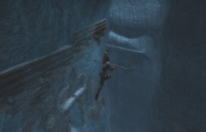 Screenshot Schwingt euch über die Fallen hinweg, schwingt jedoch länger damit ihr genug Schwung habt. Auf der anderen Seite müsst ihr im nächsten Raum die rechte Kette nach oben klettern, springt dann auf die andere Kette und klettert diese weiter nach oben und wechselt schließlich noch einmal zurück zur ersten Kette um es bis ganz nach oben zu schaffen. Nun gelangt ihr über einen Durchgang in einen anderen Raum. Springt ins Wasser und taucht unter um weiter zu kommen, folgt immer dem Weg bis ihr schließlich auf der anderen Seite wieder auftauchen könnt. (Ihr könnt auch zwischendurch auftauchen um etwas Luft zu schnappen)