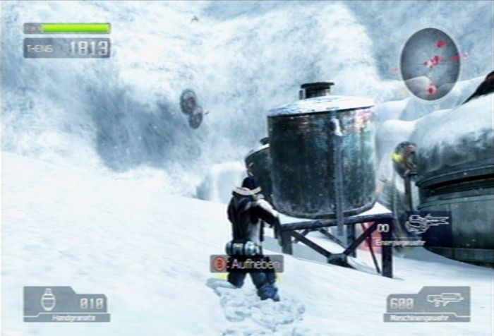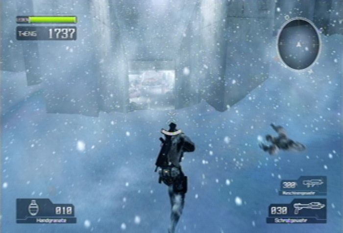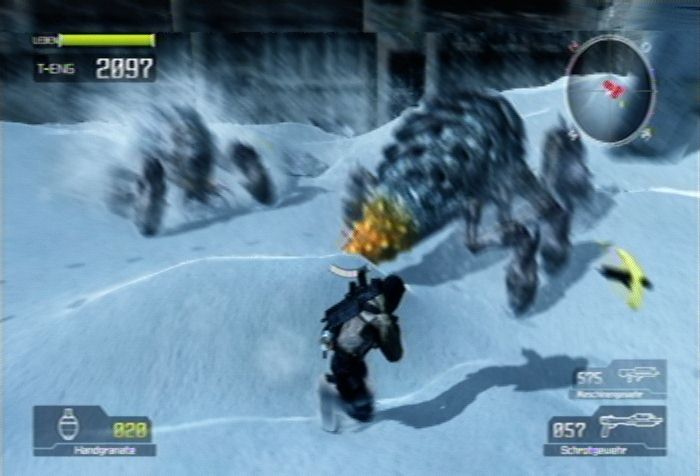 Schnee bis ihr rechts auf einige Gegner stößt. Hier gilt die übliche Vorgehensweise, zerstört zunächst die Löcher aus denen