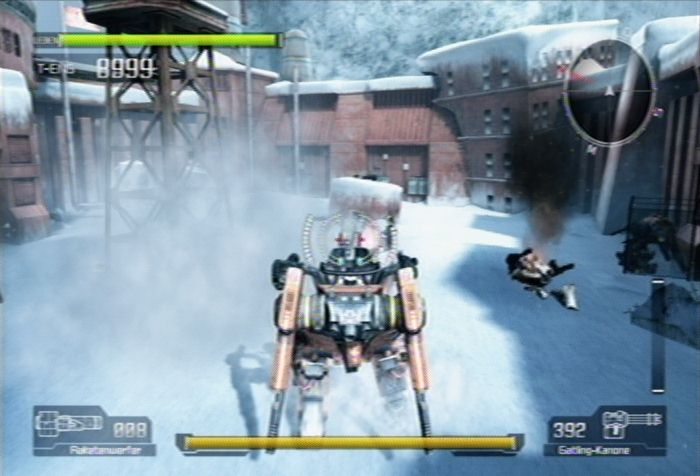Raketenwerfer offen halten. Denn nun begegnet euch auf der anderen Seite ein feindlicher Mech. Eure