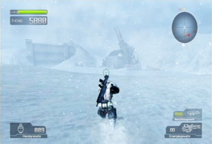 Lauft geradeaus und schnappt euch rechts den einsam herumstehenden VS. Stapft nun sogleich etwas entspannter durch den tiefen