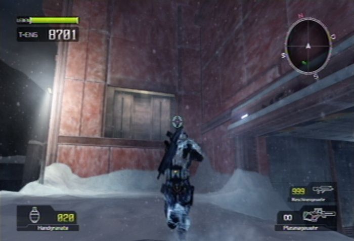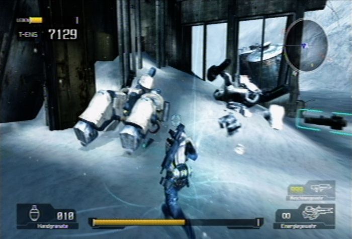 stoppen. Auf der anderen Seite der Halle schießt ihr auf die Tore dann gelangt ihr nach draußen. Hier lauern euch sogleich ein