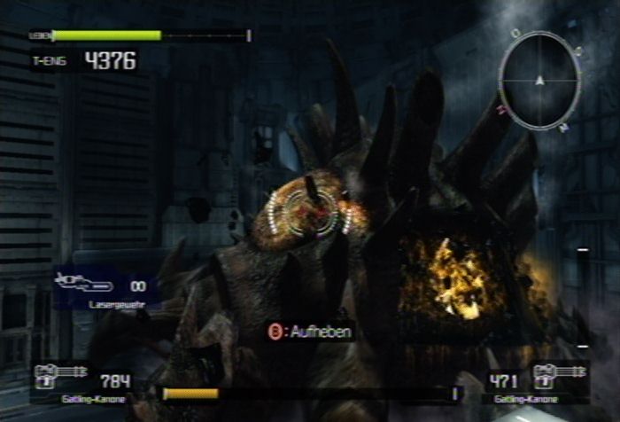 Seite neben die Waffe und drückt die B-Taste. Jetzt widmet ihr euch endlich dem Gegner. Auch hier befindet sich die verwundbare