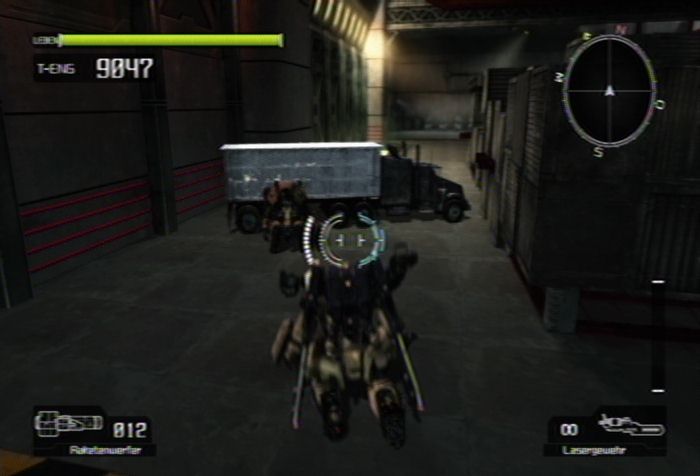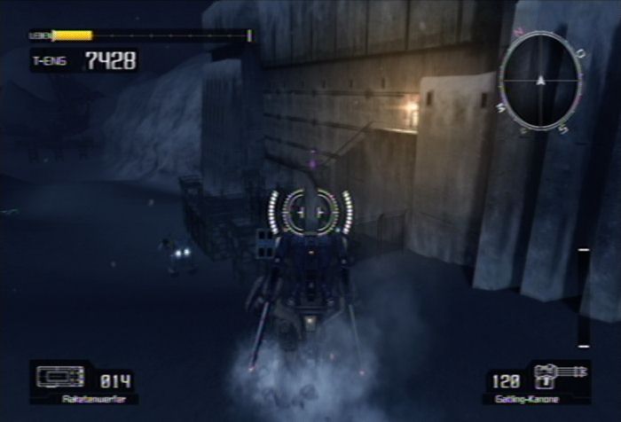 wohlbekannte „Garage“. Zerstört das Tor und schnappt euch den Mech der zum Vorschein kommt.