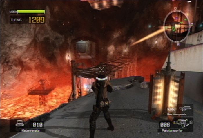 Löcher bevor ihr die restlichen Feinde ausschaltet. Aktiviert sobald die Luft rein ist die Datenstation. Lauft über die Brücke