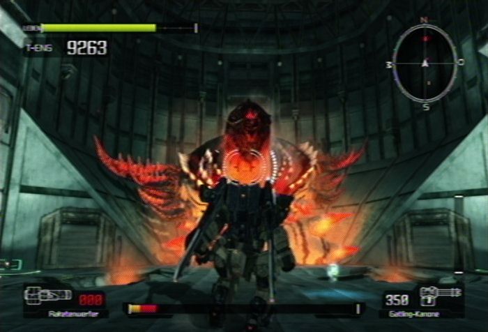 Am Ende des Weges könnt ihr eine weitere Datenstation aktivieren und so eure Thermalenergie aufladen, dann schnappt ihr euch den Vital Suit (VS). Bleibt ständig in Deckung und bleibt unbedingt von der Vorderseite des riesigen Gegners weg. Versucht die seitlichen, gelb leuchtenden Teile zu attackieren. Jedoch wirklich erfolgreich könnt ihr dabei nicht sein, da ihr durch eine dramatische Zwischensequenz unterbrochen werdet.