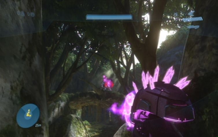 Nach einem kurzen Intro müsst ihr zunächst den Anweisungen folgen. Blickt zunächst nach oben auf den roten Punkt, ist das geschafft müsst ihr nach unten blicken. Das ganze wiederholt sich noch einmal, bis ihr euch schließlich bewegen könnt. Lauft zunächst geradeaus, und folgt den anderen durch das Tal. Sobald ihr bei dem Fluss, mit dem Wasserfall, angelangt seid haltet ihr euch rechts. Springt über den Baum der den Weg blockiert, und achtet auf die Feinde die sich hier aufhalten. Schaltet vor allem den Brute aus, der sich rechts oben auf einer Klippe aufhält. (Passt jedoch auch auf die kleineren Grunts auf, die hier ebenfalls herumlaufen) Folgt dem Verlauf des Flusses weiter, und achtet nun auf das Raumschiff, dieses bringt euch einige neue Feinde. Beseitigt auch hier alles was sich bewegt (am besten mit eine Handgranate) bevor ihr nach unten weiter springt.