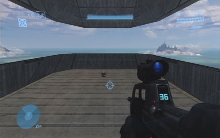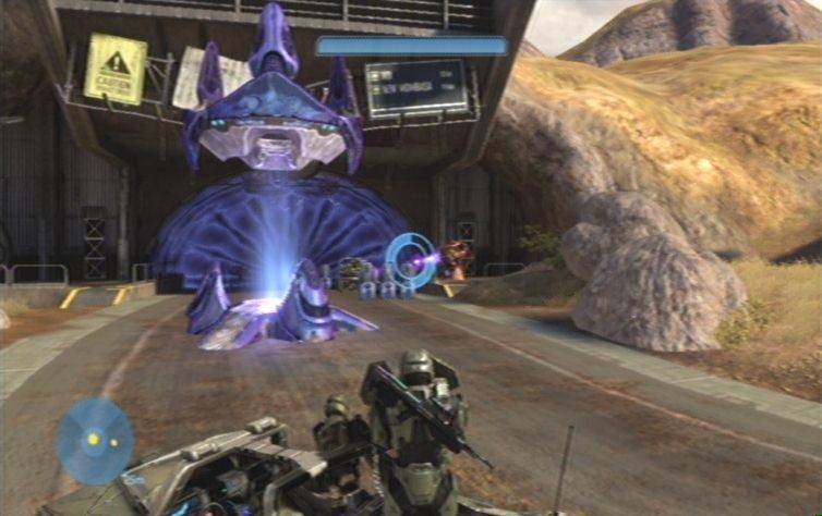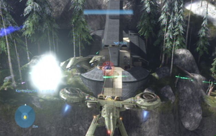 Folgt dem Gang geradeaus, am Ende wartet ihr bis der Kartograf links die Tür für euch öffnet. im nun folgenden Raum findet ihr links unten, auf der Plattform, den gesuchten Schalter. Ist die Brücke aktiviert dreht ihr euch um, und lauft die Rampe nach oben. An der gegenüberliebenden Wand befindet sich das 02. Terminal des Spieles. Verlässt nun durch den anderen Gang diesen Raum, und lauft weiter bis ihr wieder an der Oberfläche seid. Ihr könnt bereits sehen was als nächstes auf euch zukommt. Lauft nun aber zunächst den Hügel nach unten, und übernehmt die Rolle des Schützens bei einem Warthog der hier unterwegs ist.