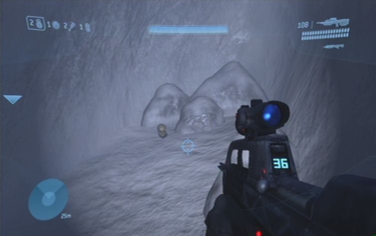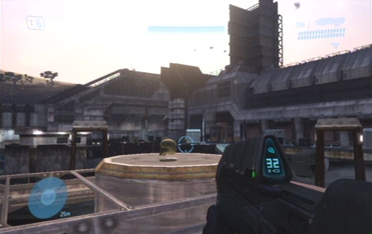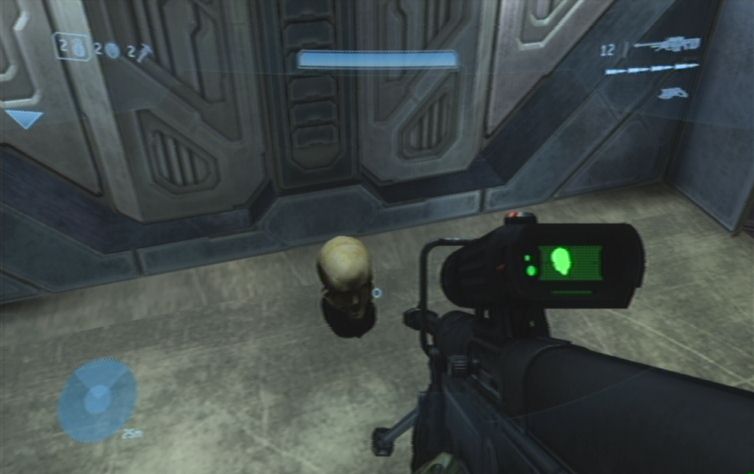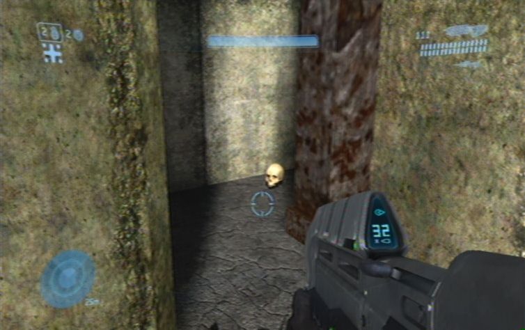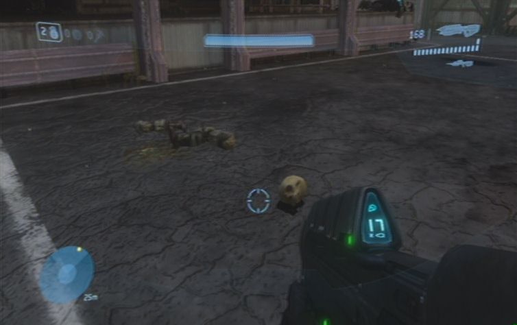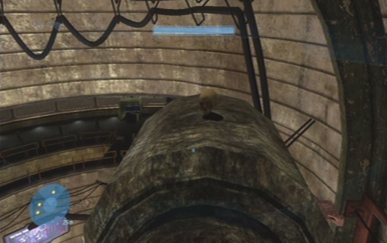 Haltet euch zunächst links, und folgt dem Pfad auf dieser Ebene. Weiter vorne befinden sich rechts einige Feinde, diese solltet ihr als erstes ausschalten. Folgt diesem Pfad weiter, und rechts bei einem Gebäude schaltet ihr weitere Feinde aus. Begebt euch nun in den unteren Teil und erledigt alle feindliche Ghosts, konzentriert euch dabei jedoch auf die Fahrer, damit ihr für den Fall der Fälle einen Ersatz habt. Zunächst solltet ihr am besten keinen der Panzer zerstören, schon gar nicht den Panzer der links oben im Gebiet abgesetzt wird, da ansonsten der nächste Schädel sofort verschwindet. Ihr müsst nun im unteren Teil des Gebietes zu einem runden Gebäude fahren. Parkt hier einen Warthog, am besten so Nahe wie möglich. Nun platziert ihr eine Granate unter dem Fahrzeug, und nutzt den Schwung um nach oben zu kommen. Leider klingt das ganze um einiges einfacher als es dann tatsächlich ist. Ihr müsst daher wohl oder übel solange Trainieren bis es klappt. Wenn ihr nur so vom Warthog wegspringt, geht es sich meistens um einen gefühlten Millimeter nicht aus.