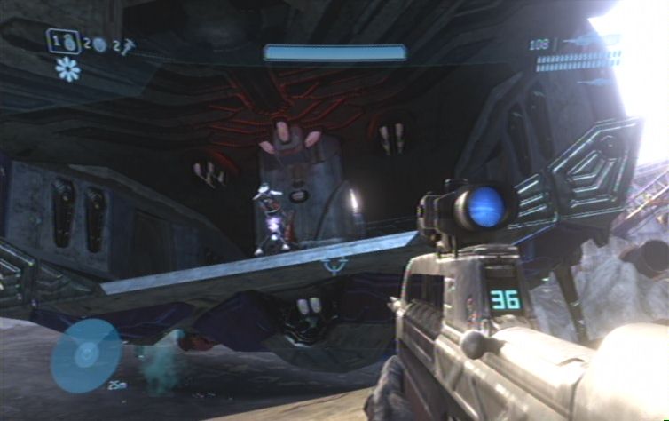 Durchquert den nächsten Raum, und lauft weiter bis ihr wieder in einem Außenbereich seid. Lauft blitzschnell nach links, und nach vorne zu dem stationären Geschütz. Benutzt dieses um die unzähligen Flood im Gebiet vor euch zu erledigen. Da ihr von der anderen Seite ebenfalls heftig beschossen werdet, solltet ihr auch in diese Richtung feuern, oder im Notfall zwischendurch in Deckung gehen. Auf der anderen Seite des Gebietes geht der Kampf jedoch noch weiter, kommt vor allem den stärkeren Gegnern auf keinen Fall zu Nahe, da sie durchaus einige Treffer (selbst mit der Schrotflinte) vertragen. Sobald auch hier das Gebiet gesäubert ist springt ihr links nach unten, und lauft zu dem Wrack weiter. Hier geht es schließlich rechts an der Außenhülle des Schiffes, nach oben weiter. Am höchsten Punkt könnt ihr schließlich in das Innere des abgestürzten Schiffes gelangen, lasst euch dazu einfach nach unten fallen.