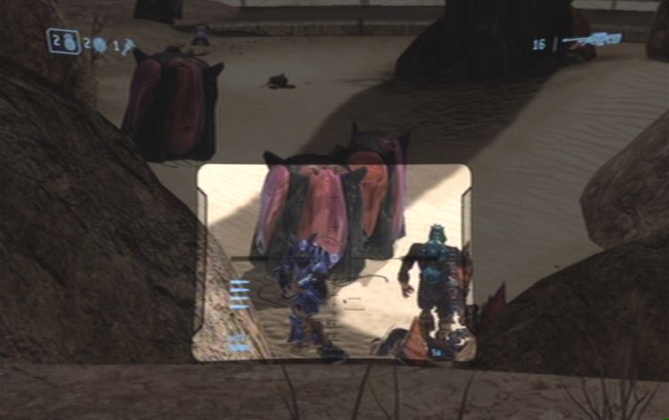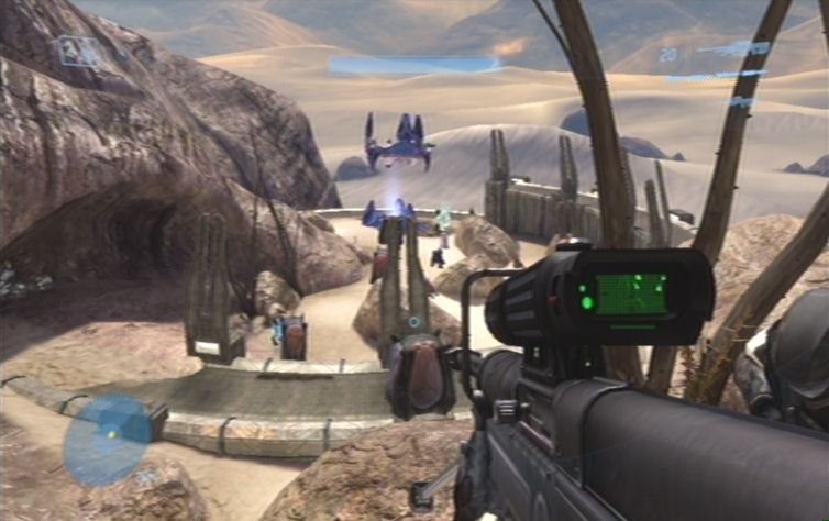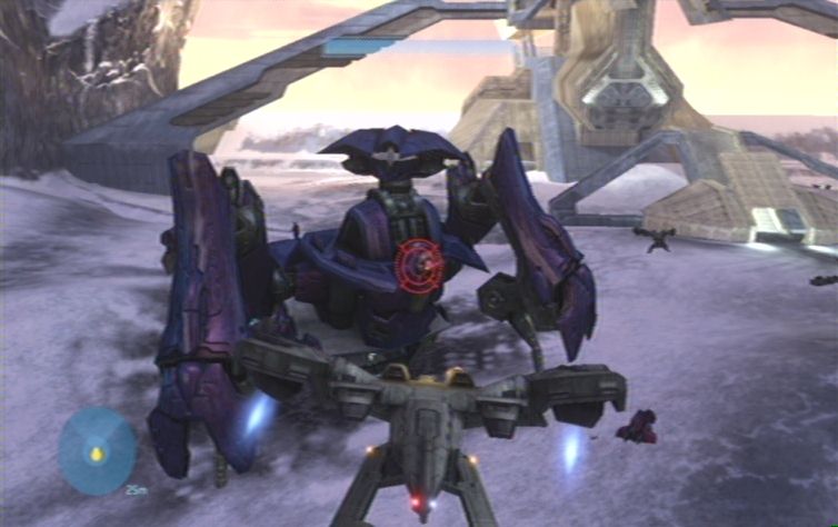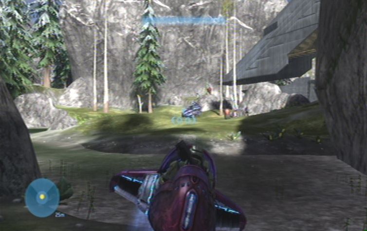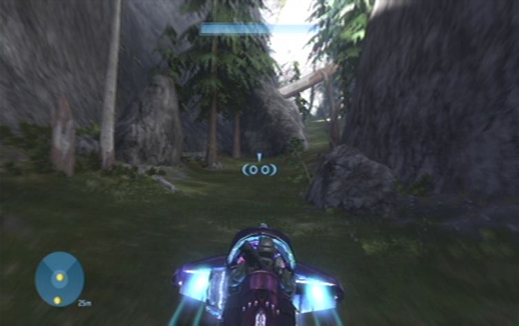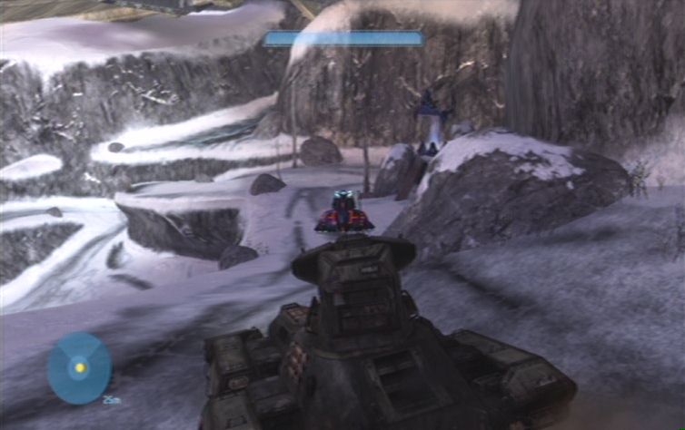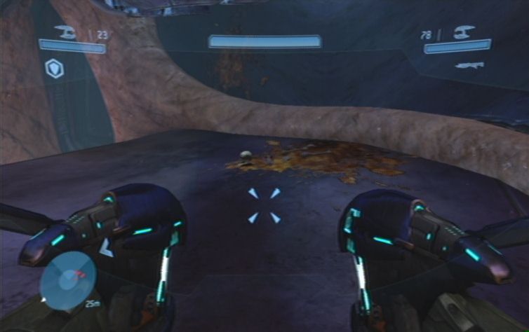 Nachdem ihr einen Hügel nach oben gefahren seid befindet sich links ein lilafarben leuchtendes Objekt. Seid hier vorsichtig, und schaltet die beiden Scharfschützen aus, bevor sie euch ins Visier nehmen können. Auch bei dem nächsten lilafarbenen Objekt versteckt sich im oberen Teil ein Gegner, kurz danach stößt ihr rechts erneut auf die Trümmer eines feindlichen Fahrzeuges. Hier erwarten euch einige Grunts sowie ein Brute. Nachdem ihr ein enges Tal durchquert habt kommt ihr in ein etwas offeneres Gebiet. Ignoriert mehr oder weniger das feindliche Landungsschiff, und kümmert euch zunächst um das stationäre Geschütz geradeaus auf dem Felsen. Nun erledigt ihr noch das restliche Fußvolk, des Weiteren müsst ihr nun einige kleinere Gegnergruppen beseitigen. Diese bestehen meistens aus einigen Grunts sowie einem Brute. Es geht nun immer weiter den Weg entlang, am linken Hügel, im nächsten Tal vor euch, lauern euch natürlich weitere Feinde auf, die es zu erledigen gilt.