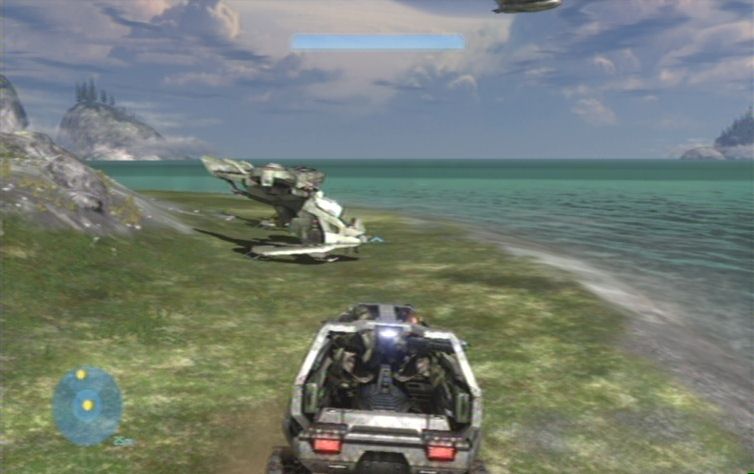 Ist das Gebiet gesichert sammelt ihr alles Nützliche ein, haltet natürlich auch die Augen nach dem Unverwundbarkeits-Item offen. Ganz vorne im Raum aktiviert ihr den Schalter, schon lauft ihr wieder zu dem Lift zurück. Betätigt erneut den Schalter, um wieder nach unten zu kommen. Unter euch sind ein paar neue Feinde aufgetaucht, jedoch nur Grunts sowie Schakale, also kaum der Rede wert. Kehrt nach draußen zurück, und schnappt euch den Warthog, mit diesem fährt ihr zurück nach oben, und schließlich wieder zum Strand. Nun dürft ihr auch gleich eine Premiere erleben, ein neues Fahrzeug, den Hornet.
