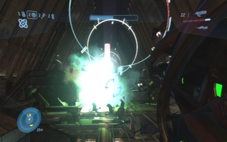 Folgt dem Gang nach oben und ihr landet wieder im Kontrollraum. Auf dem Weg zu der Bombe befinden sich zunächst zwei Grunts, weiter vorne befinden sich selbstverständlich auch noch einige Brutes. Haltet am besten Abstand, und kämpft aus der Entfernung, am besten vom Gang aus durch den ihr den Raum erreicht habt, da ihr hier eher noch Deckung findet. Da die Brutes mit sehr starken Waffen ausgerüstet sind solltet ihr nie zu lange auf einem Ort stehen bleiben, bleibt immer in Bewegung, und versucht zwischendurch einige Treffer zu landen. Wenn die Feinde besiegt sind lauft ihr bis ganz nach unten, wo ihr die Bombe aktivieren könnt. Lauft wiederum zurück nach oben, und die Treppe nach unten.