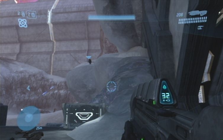 Nach der Landung folgt ihr den Marines um den Berg herum. Ihr könnt euch hier praktischerweise nicht verlaufen. Bei der feindlichen Basis angekommen lauft ihr den Hügel bis ganz nach oben, dort wo ihr auch eine Kapsel mit einem Ersatz-Scharfschützengewehr sehen könnt. Erledigt von hier aus die ersten Feinde, konzentriert euch hierbei vor allem auf die Brutes. Sobald diese besiegt sind kümmert euch um die Schakale, und am Ende schließlich noch die Grunts. Frischt eure Munition für das Scharfschützengewehr bei der Kapsel auf, und lauft nach unten zu der Basis.