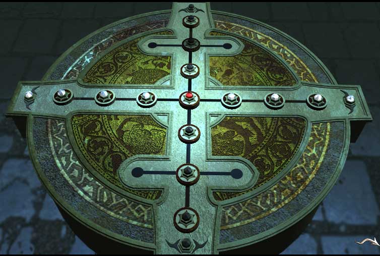 Setzen Sie das seltsame Objekt ein. Aus dem Boden erhebt sich eine Art Altar und präsentiert ein weiteres Knobbelrätsel.