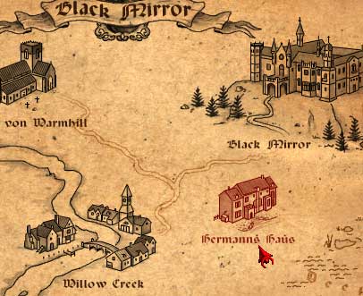 Eine Unterhaltung mit Viktoria in der Eingangshalle am Kamin schaltet auf der Karte Hermanns Haus frei.
