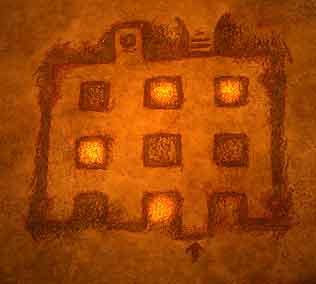 Suchen Sie jetzt den Abschnitt auf, in dem an der rechten Wand eine Fahne hängt und in der linken Wand ein Ziegelstein-Schalter eingebaut ist. Betätigen Sie den Schalter und irgendwo öffnet sich eine Tür. Gehen Sie ein Stück nach hinten und Sie erblicken die Tür, in deren Schlüsselloch der gefundene Talisman passt.