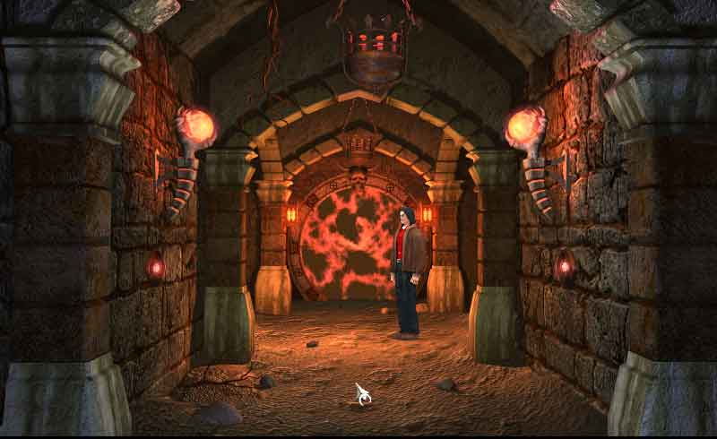 Untersuchen Sie in der Gruft als erstes die Schädel an den Wänden. Einer der Schädel ist gespalten. Werfen Sie die Steine dagegen und er fällt runter. In dem Schädel war ein Schlüssel versteckt, der jetzt für Sie unerreichbar hinter einem Gitter liegt. Gehen Sie zum verlassenen Haus und nehmen Sie den Schürhaken mit. Mit dem Schürhaken können Sie den Schlüssel rausziehen.