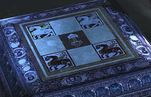 Nehmen Sie das Kästchen an sich und den Schlüssel raus. Untersuchen Sie auch das Steinrelief an der Wand.