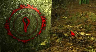 Untersuchen Sie die Stelle genauer, an der William seinen Tod fand: Das Symbol an der Wand und den Strauch. Im Strauch finden Sie mit der rechten Maustaste ein seltsames Objekt.