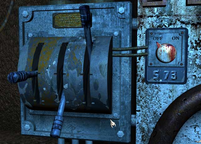 Klettern Sie zwei mal rauf und gehen Sie in den Maschinenraum. Wenden Sie die Pläne aus dem Inventar auf die Kontrolltafel an. Der Fahrstuhl funktioniert noch nicht, Schuld daran ist das Leck zwei Ebenen tiefer. Untersuchen Sie das Leck und begeben Sie sich wieder zum Maschinenraum. Feuchten Sie den Lappen in der Pfütze an und steigen Sie zwei Ebenen tiefer, um das Leck mit dem feuchten Lappen zu stopfen.