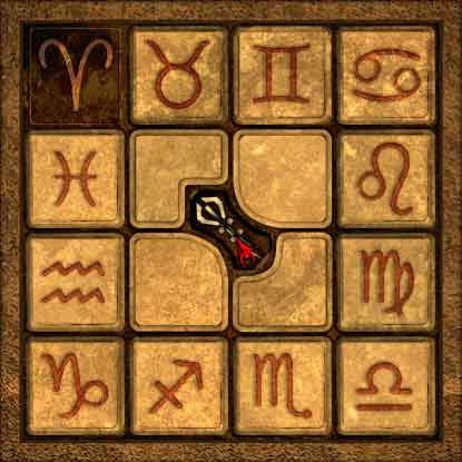 Geben Sie das Blut, die Erde und das Wasser in die jeweiligen Schallen im Grab und Sie stehen vor einem weiteren Rätsel. Verschieben Sie die Tierkreiszeichen, um folgendes Bild zu erhalten: