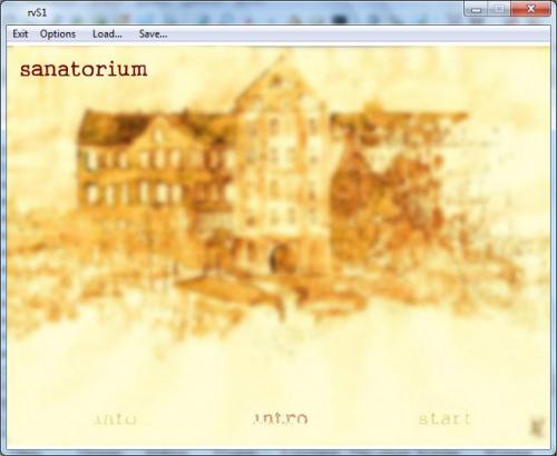 Nach Betätigung des Startbuttons (rechts unter dem Hauptgebäude) sehen wir zwei Textbotschaften in Stummfilmmanier. Infolge mehrmaligen Klickens auf die Bildfläche finden wir uns in einem schwarzen Raum wieder und es dauert ein wenig, bis sich unsere Augen an die Dunkelheit gewöhnt haben. Wir können uns nun um die eigene Achse drehen ohne ein weltbewegendes Ergebnis zu erreichen, oder aber nach vorne schreiten und sodann leicht rechts auf einen Lichtspalt zubewegen. Wir versuchen irgendeine Richtung einzuschlagen, was aber vielmehr als Auslöser eines Zeitsprungs bedeutsam ist und infolgedessen wir uns ein Schälchen mit undefinierbarer Nahrung einverleiben können, welches zwischenzeitlich durch eine Klappe in der Tür geschoben wurde. Der darin befindliche Gegenstand (Metalldreieck) wird Bestandteil unseres Inventars. Sodann greifen wir rechterhand neben der Tür zu einer vom Schleier der Dunkelheit getarnten Glühbirne, die wir sogleich oberhalb der Türe in eine Fassung drehen können.