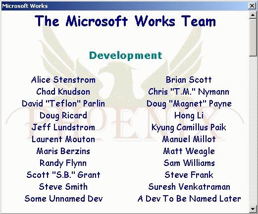 Wählen Sie Hilfe/Über. Klicken Sie in die Liste, und geben Sie das Wort PHOENIX ein, um die Credits zu sehen.