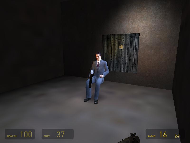 Wahrscheinlich haben die Programmierer einen Platz im Level gesucht, um den G-Man auf dem Fernseher im roten Container erscheinen zu lassen.
