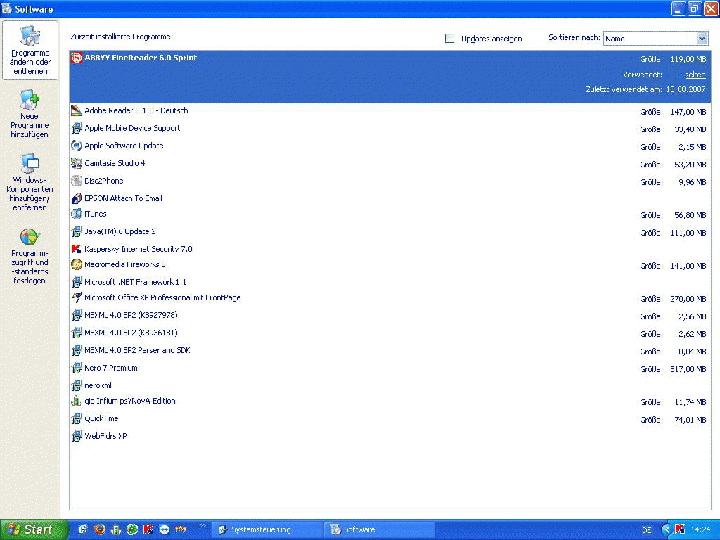 hi leute ich wollte jetzt ma wieder was von meinem PC deinstallieren nur wenn ich dann auf start>systemsteuerung>software gehe dann wird da net alles angezeigt was ich installiert habe sondern nur das_hier