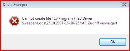 habe den cleaner benutzt aber der sagt mir dann fehlermeldung das der zugriff auf ne datei in C:\Programme\Driver Sweeper verweigert wurde ürgend so ne txt datei