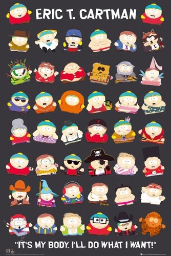 Da is n Pic mit mehreren Verkleidungen von Eric, irgenwo is CARTMAN als KENNY dabei :P