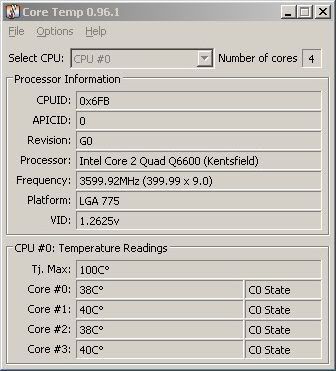 Meine Temperaturen sind sogar einen Ticken besser (max. 60°C bei Core 2, alle anderen sind 5-7 °C kühler) als deine, aber meiner läuft auch nur mit 1,16 Volt Vcore derzeit und 2,4 Ghz.