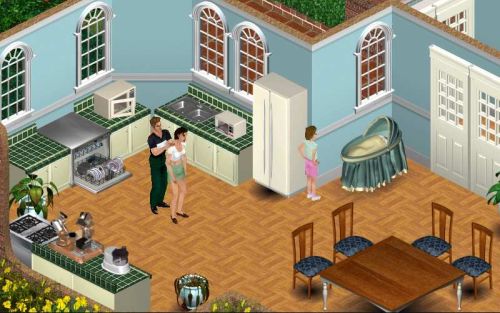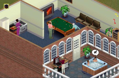 Der zwischenmenschliche Teil ist am faszinierenden. Die Beziehungen zu anderen Sims lassen sich zum Beispiel durch Geschenke, das Erzählen von Witzen oder Umarmungen fördern. Aber auch ein gemütlicher Fernsehabend auf dem Sofa vermag die Beziehungen zu den Nachbarn verbessern. Freundschaft folgt Leidenschaft, und daraus werden im Idealfall Verlobung, Hochzeit und Familienzuwachs. Der macht das Spiel nicht leichter: Wie im richtigen Leben, verursachen Kinder Kosten, tragen aber nichts zum Einkommen bei. Auch die Eroberungspläne können scheitern, wenn der potentielle Partner einen anderen Sims im Kopf hat oder man zu stürmisch vorgeht. Flirten zwei Sims miteinander, kann das einen dritten eifersüchtig machen. Solche Gefühlsregungen, Ängste und Wünsche lassen sich durch Denkblasen erkennen, die über den Köpfen der Sims schweben. Denen muß man freilich nicht nachkommen. Wer mag, der stänkert. Entfernt etwa die Leiter des Schwimmbeckens und überläßt die planschenden Sims ihrem Los. Oder stellt eine Badewanne mitten in der Küche auf.