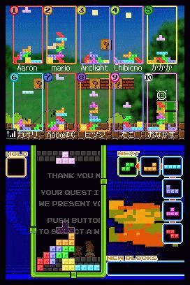 Nun gibt es den Tüftelspaß für den Nintendo DS - in unzähligen Varianten, welche die Grundidee leicht abwandeln. Etwa durch eine feste blockierte Stelle, die Aufgabe, ein Puzzle mit einem bestimmten Stein ("Tetrimino") zu lösen, natürlich der Möglichkeit, die Stücke mit dem Touchpen zu drehen. Natürlich wird ein ein Mehrspieler-Modus geboten, um drahtlos gegen Freunde anzutreten - per Hotspot sogar weltweit.
