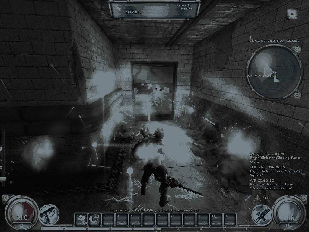 Die Spielewelt ist einwandfrei und macht einen ordentlichen Eindruck. Der Ablauf ist flüssig, das Spiel wirkt sehr bequem. Als Monsterjäger kämpfen Sie sich durch die unterschiedlichen Ebenen des Spiels. Dabei entwickeln Sie Ihren Charakter weiter und werden zu einem starken Kämpfer des Lichts. Sie sammeln Gegenstände und Waffen ein und verbessern so zusätzlich Ihre Angriffs- und Defensiv-Werte. Selbstverständlich hat Hellgate London Ähnlichkeiten mit Diablo, da Bill Roper auch Spielelemente des Klassikers bewußt einbaute. Dabei spielt die Geschichte dieses mal in der nahen Zukunft. Der Online-Modus ist zur Zeit eher ein fetter Minuspunkt. Wenn überhaupt mal ein Spiel startet, hängen die Server stark hinterher. Jedoch wird an diesem Problem gearbeitet und vermutlich bekommen die Macher es irgendwie in den Griff.